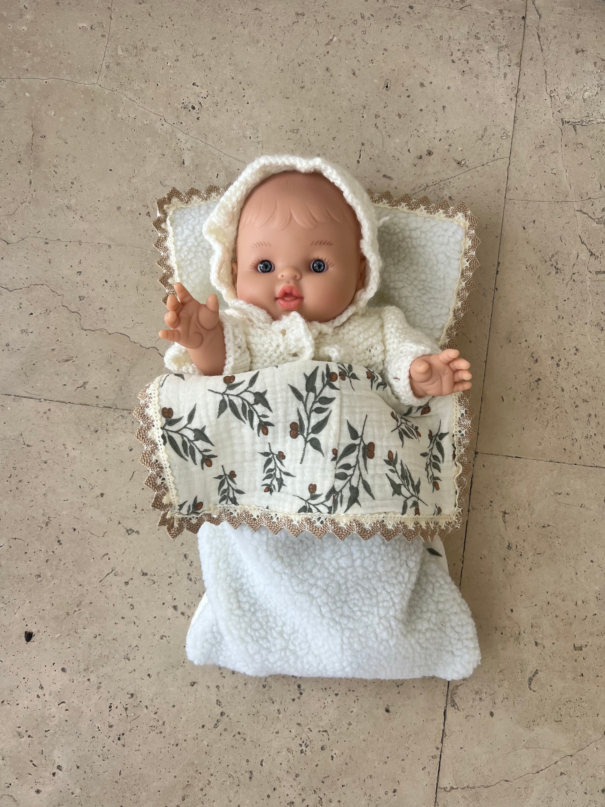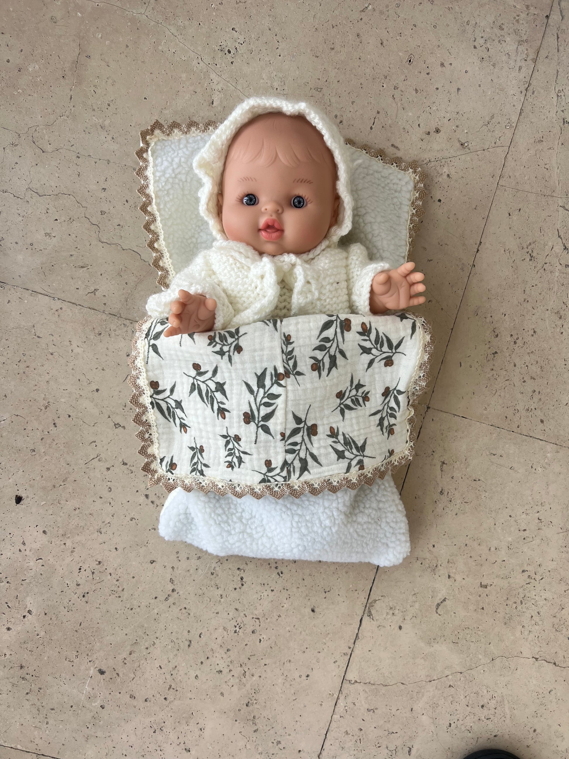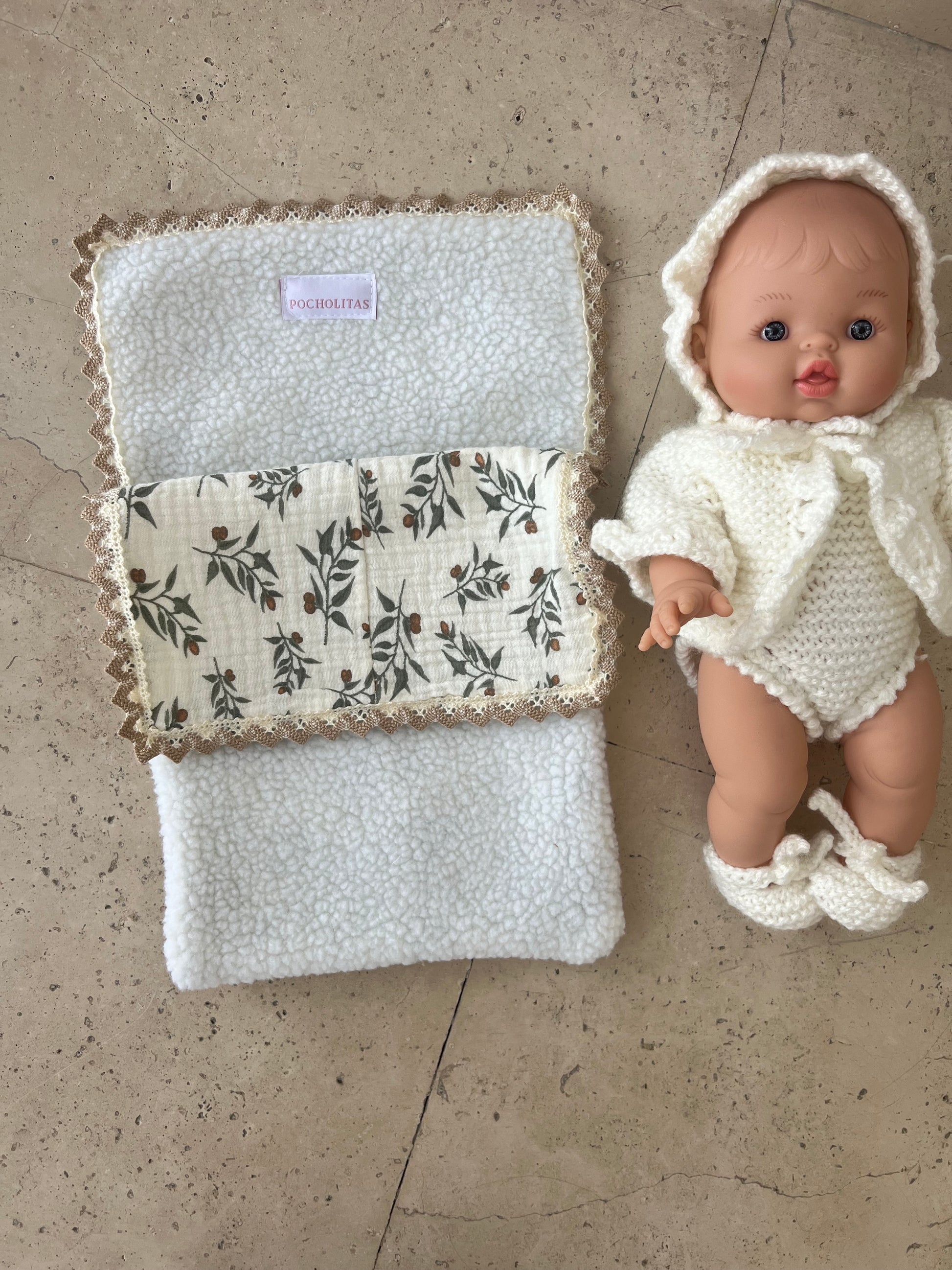 Porque las Pocholitas también merecen estar bien abrigadas, este arrullo hecho a mano es perfecto para arroparlas con todo el cariño. Confeccionado en tejidos suaves y delicados, recrea el arrullo de un bebé real, haciendo el juego aún más especial. Ligero, fácil de lavar y con un diseño adorable, se convertirá en el complemento favorito de cualquier peque.