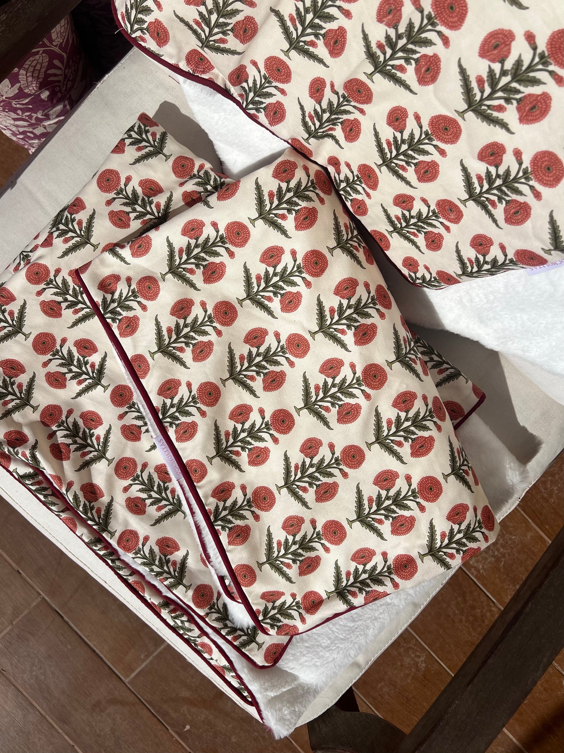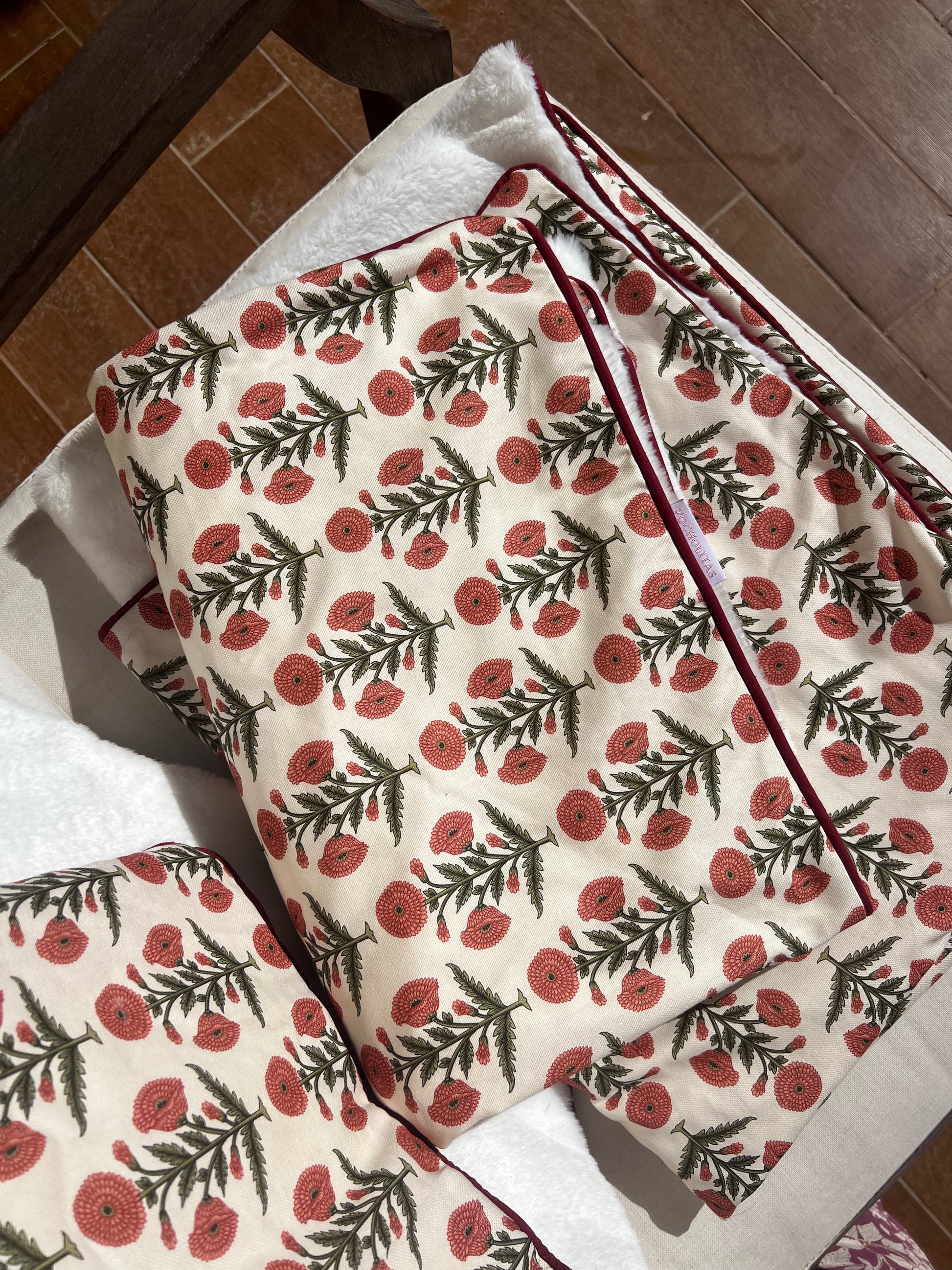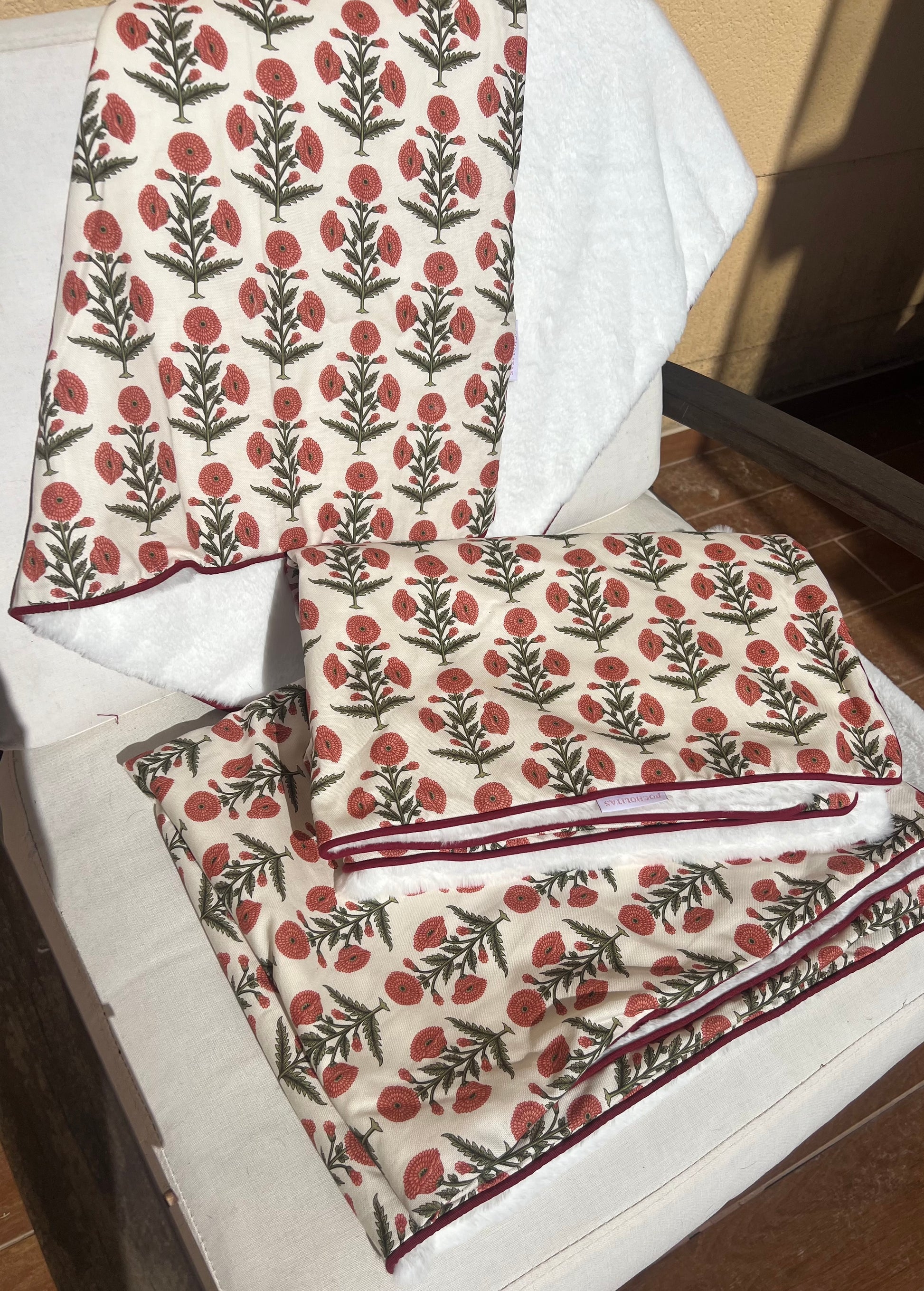Manta flores color fresón