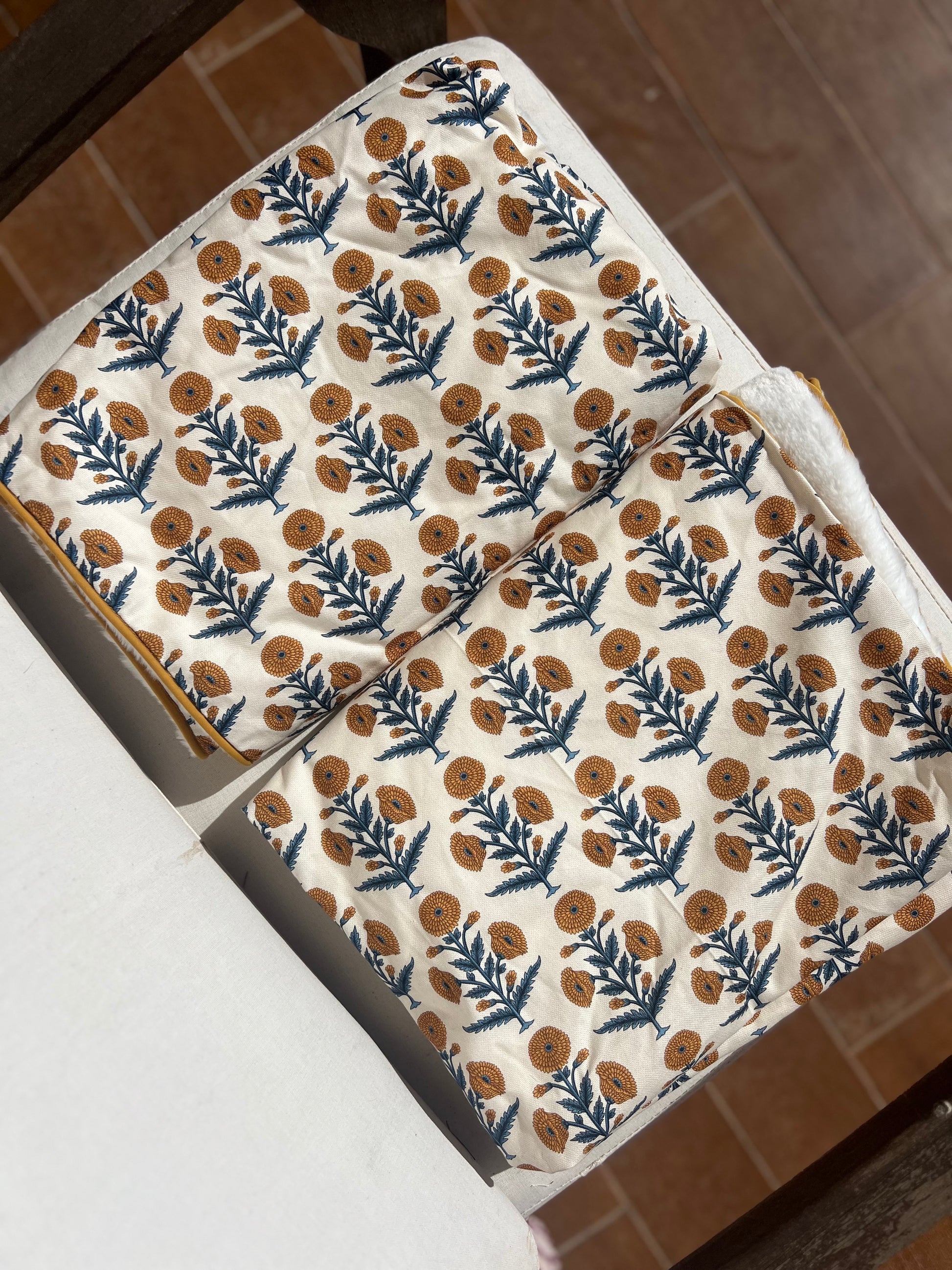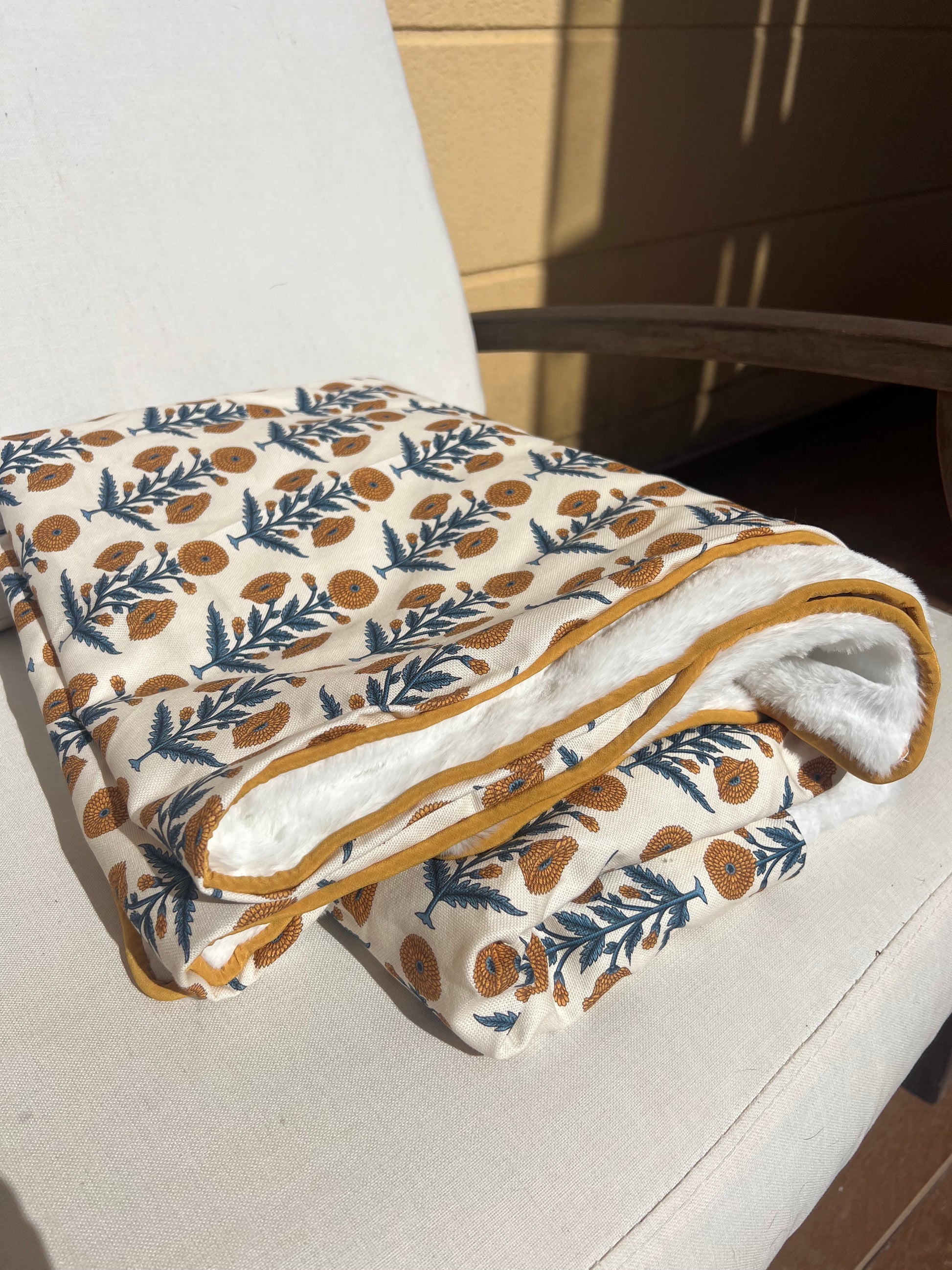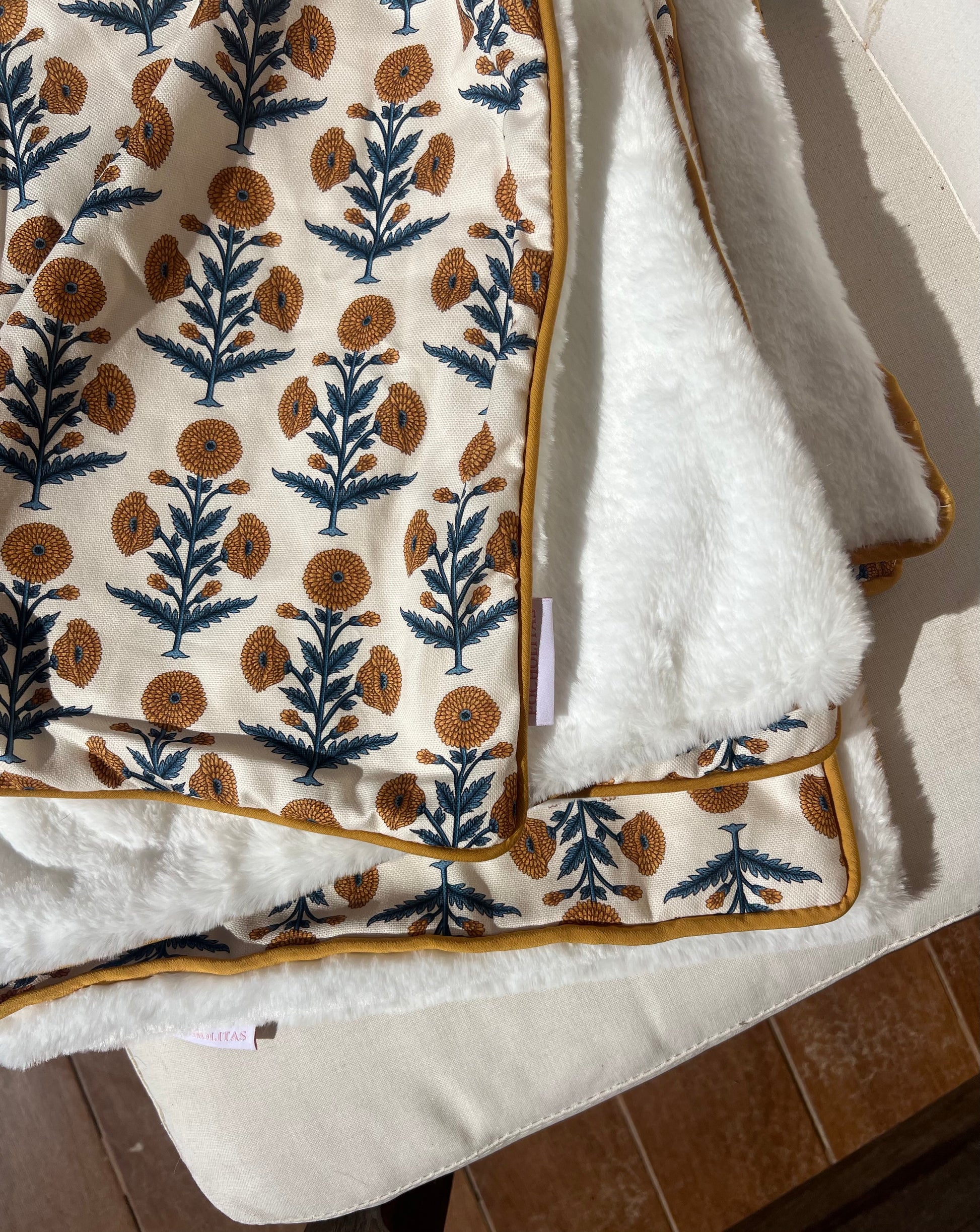 Manta flores color mostaza